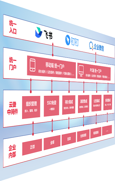 对协作平台提供支持服务,,,支持企业应用与协作平台对接,,,,包含组织同步、、消息集成、、待办集成等。。。。支持目前主流的协作平台:钉钉、、、、企微和飞书。。